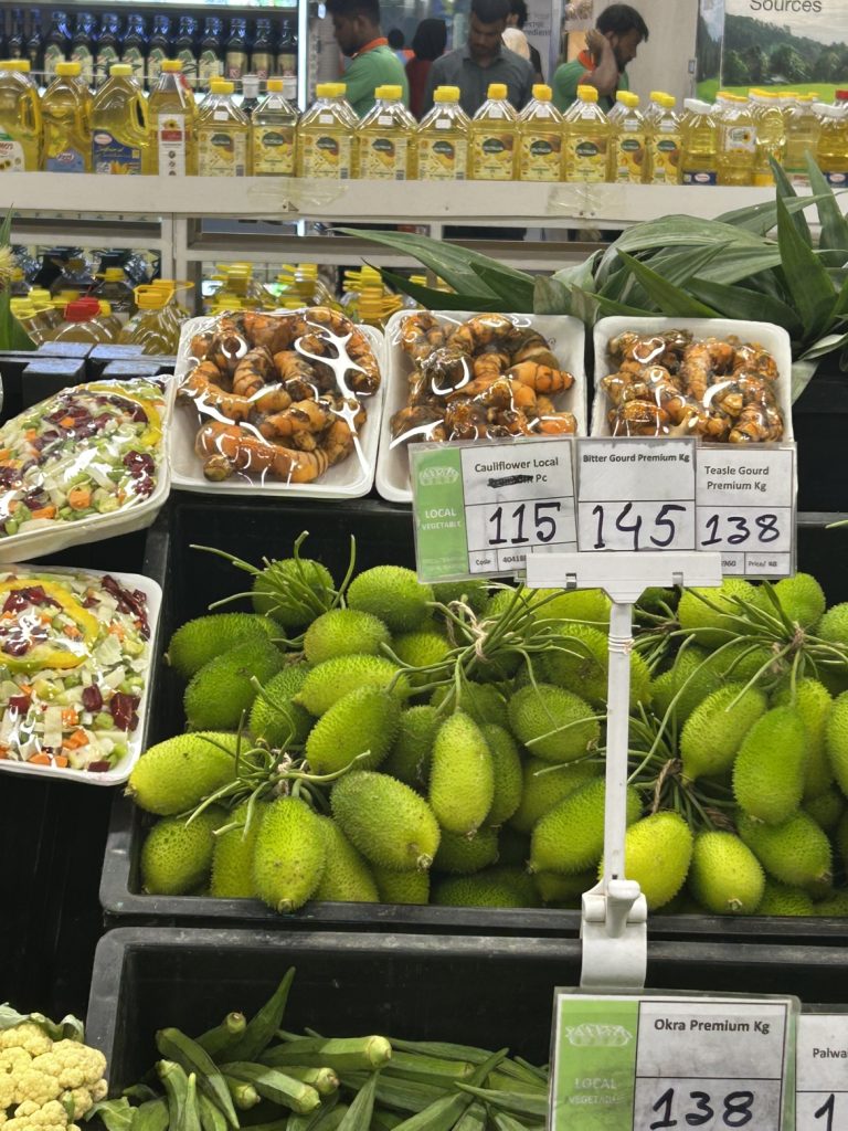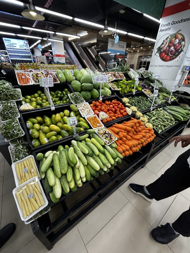 スーパーマーケットには、新鮮な野菜やフルーツがたくさん並べられており、
