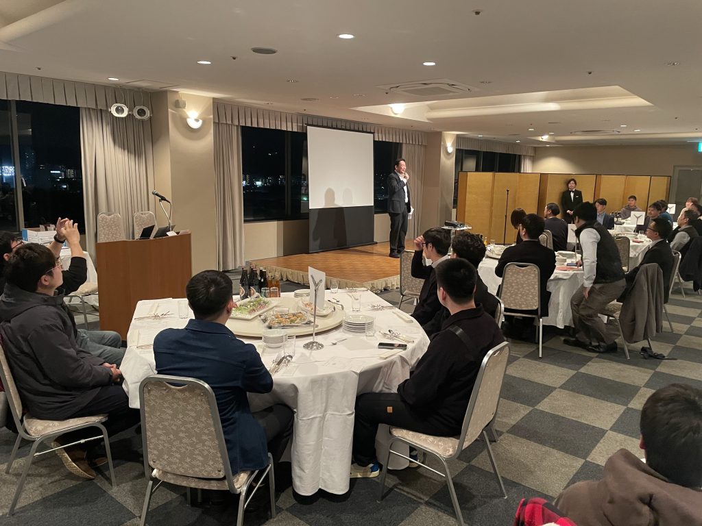 はじめに社長のご挨拶があり、おいしい料理を食べながらミニゲームをしたり、